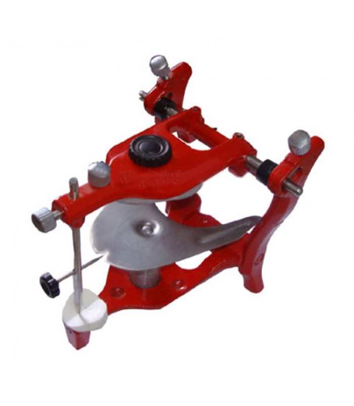 ANATOMICAL ARTICULATOR WITH INCISIVE PIN, 4 MOUNTING PLATES AND SUPPORTING BACK-PIN FOR 45 VIEW, OPENING 125, INTERCONDYLAR DISTANCE 110 MM. AVAILABLE IN ASSORTED COLORS.