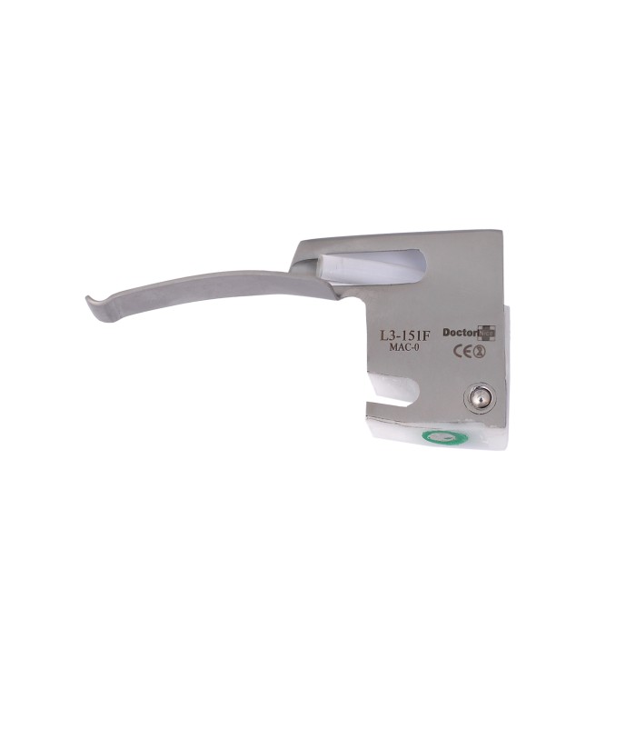 Laryngoscope Blades. These blades are made of Grade 304 Stainless Steel (Non-Magnetic) with plastic heal fitted with plastic Fiber Optic light guide. Size 0 . Green Spec